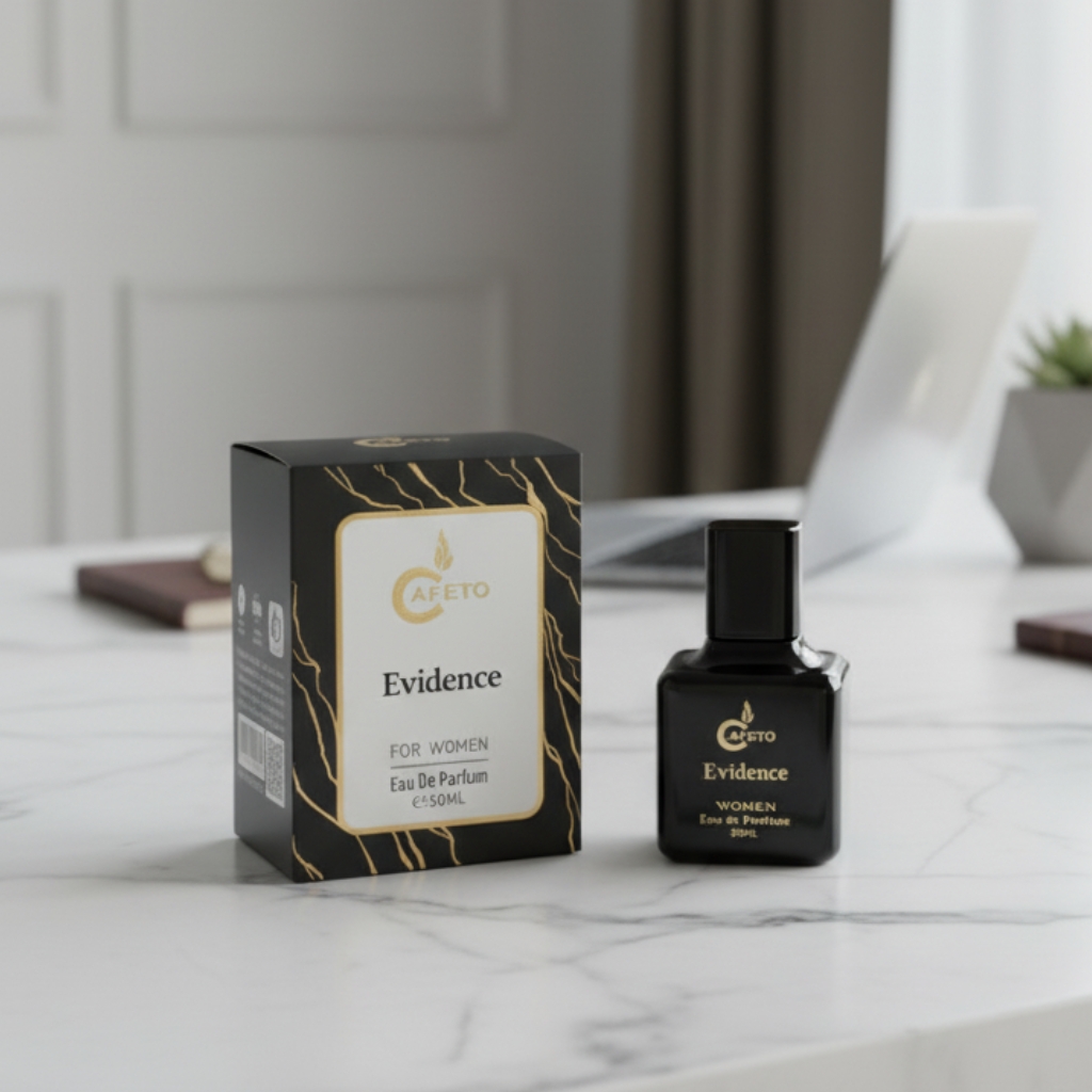 ✨ اگه دنبال یه عطر زنانه شیک و رمانتیک با رایحهای گلی و ملایم هستی که حضورت رو خاص و دلنشین کنه، Evidence از برند Cafeto حجم 50 میل انتخاب کاملیه.